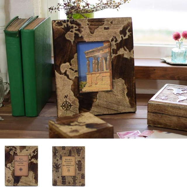写真たて 木彫り サボテン 地図 プレゼント フォトフレーム アジアン雑貨