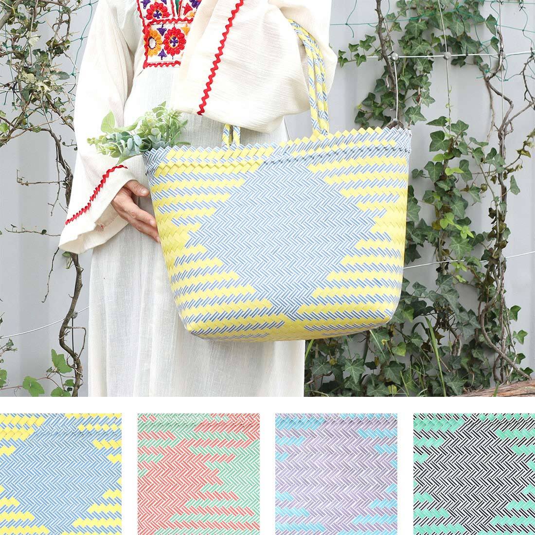 ☆プラスチックのPPバンドを編んだバッグのため、バンド端や毛羽立ちで引っ掛けが起きる可能性があります。取り扱いにはご注意ください。★お手入れの際はタグ表記をご確認ください。