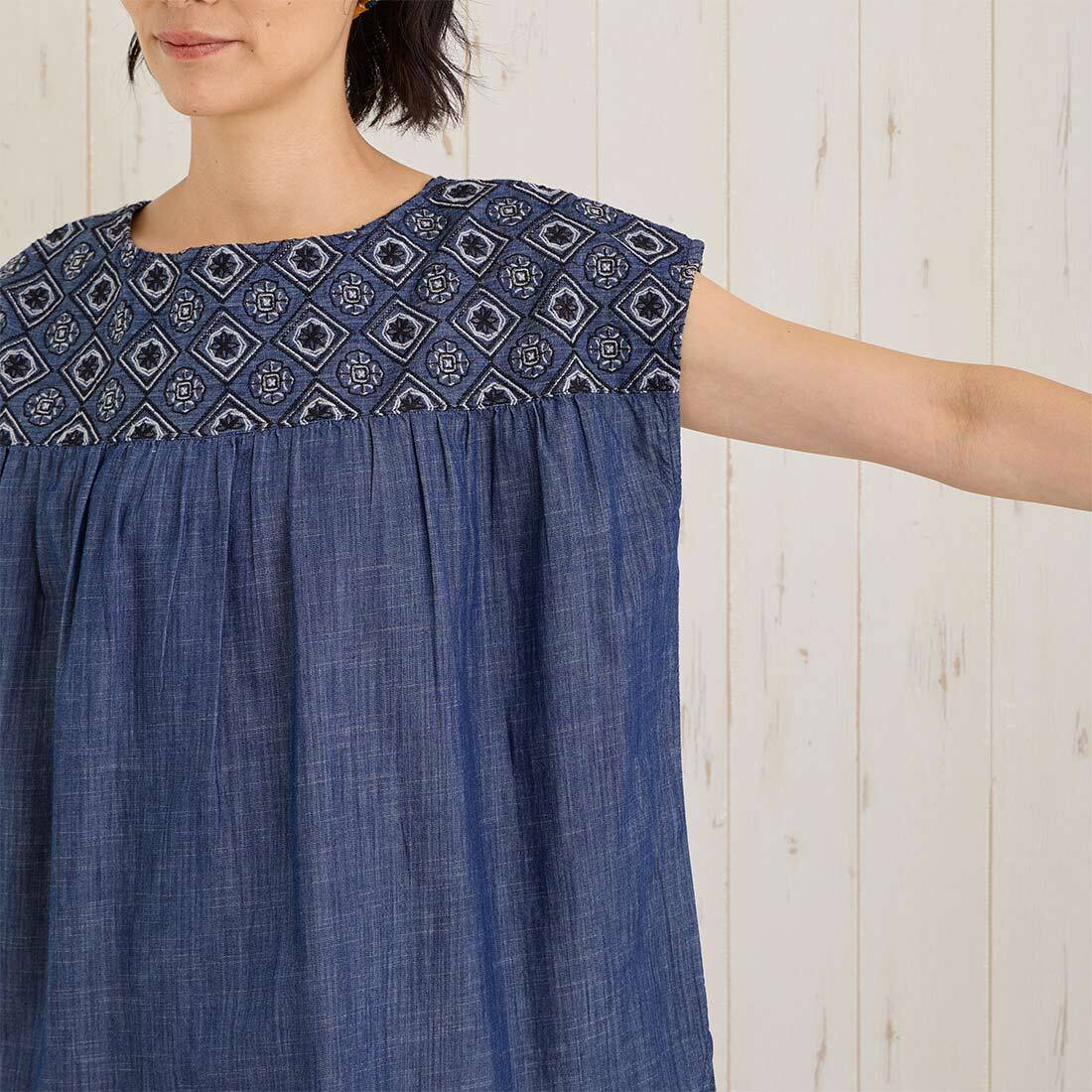 PORINAプルオーバー デニムエンブ 新モチーフで再登場 今年のデニムエンブシリーズは新モチーフで再登場! プルオーバーは前後2wayで着用可能なアイテムです。 生産地 インド サイズ 着丈SNP〜約65cm、バスト約116cm 衣料サイズガイド 素材 5.5ozスラブデニム 綿100%