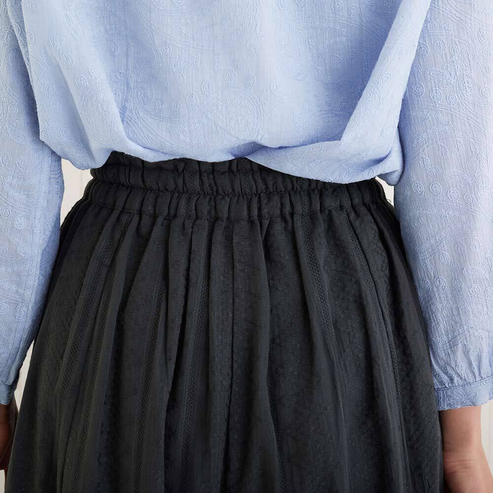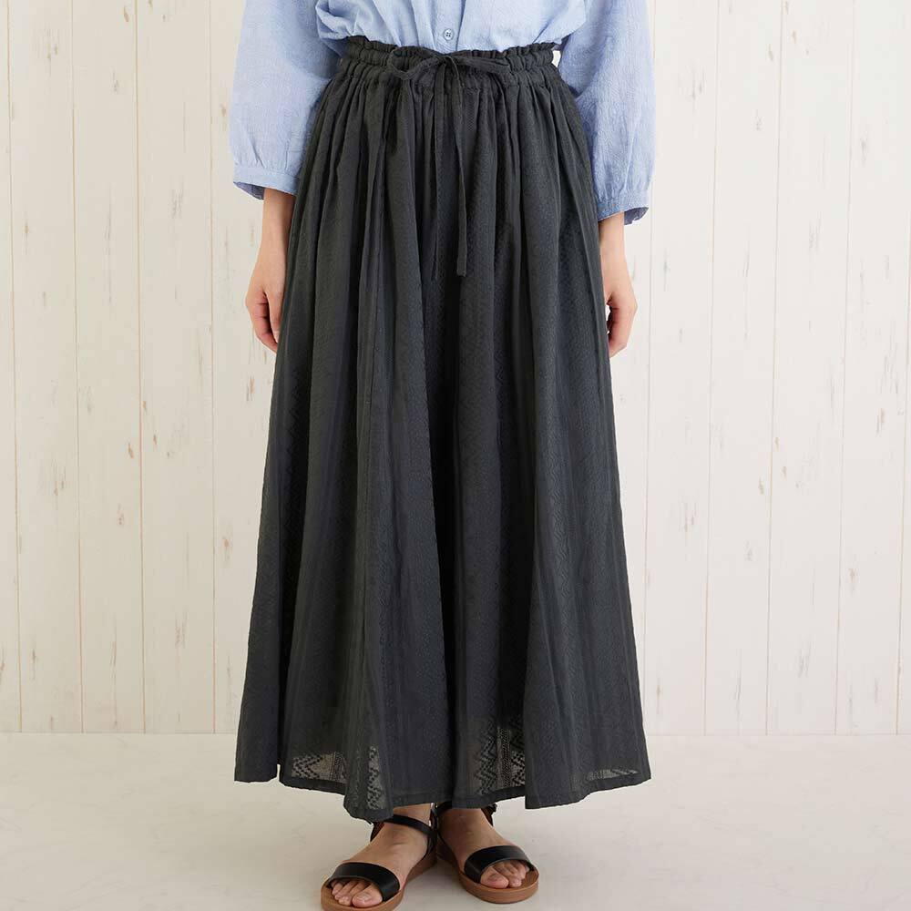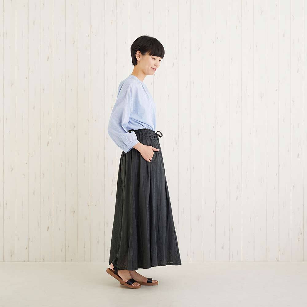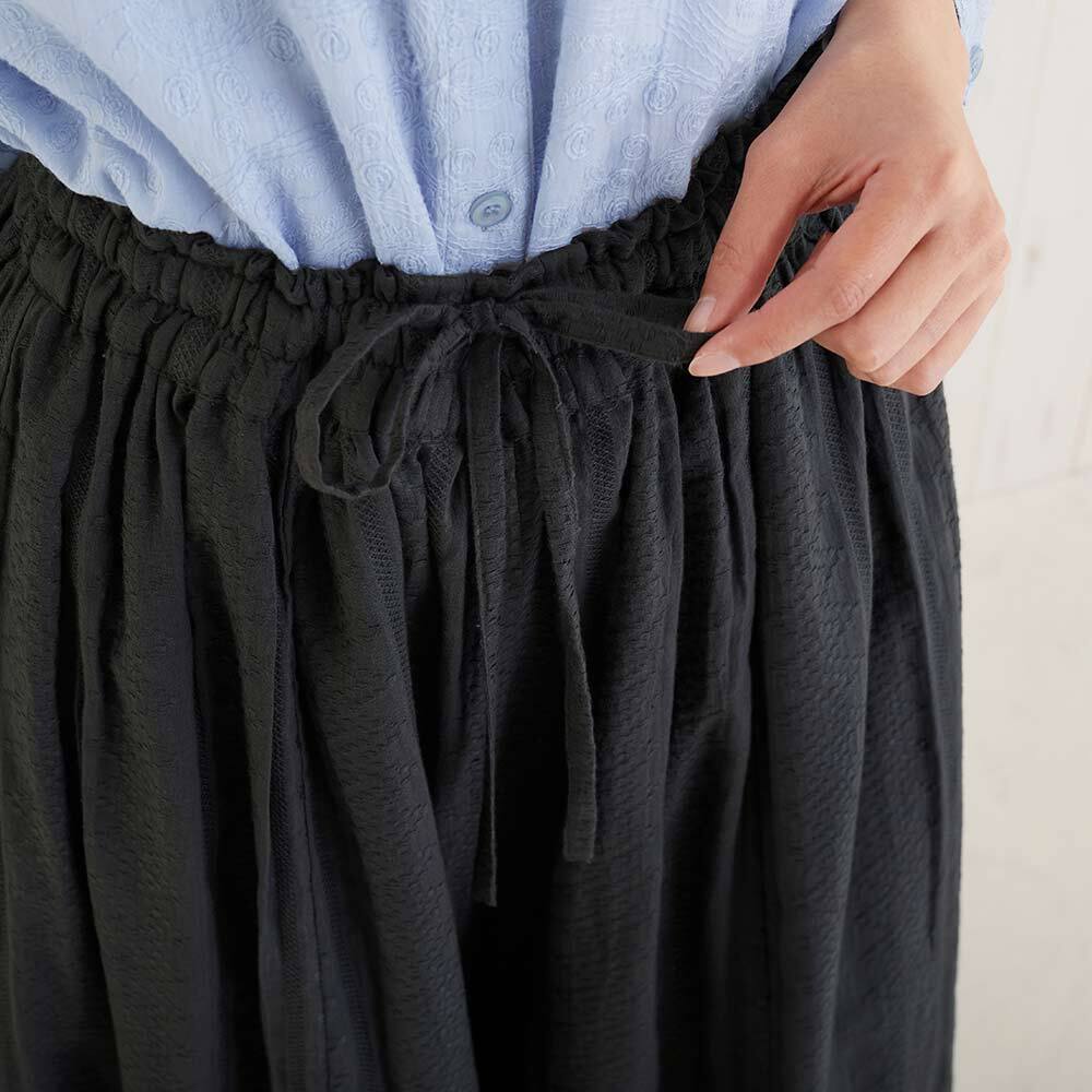 ボリューミーでスカートのようにも見えるパンツ。しっかり動きやすいので、つい道草したくなる。