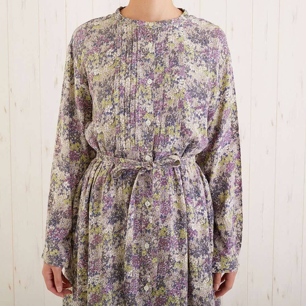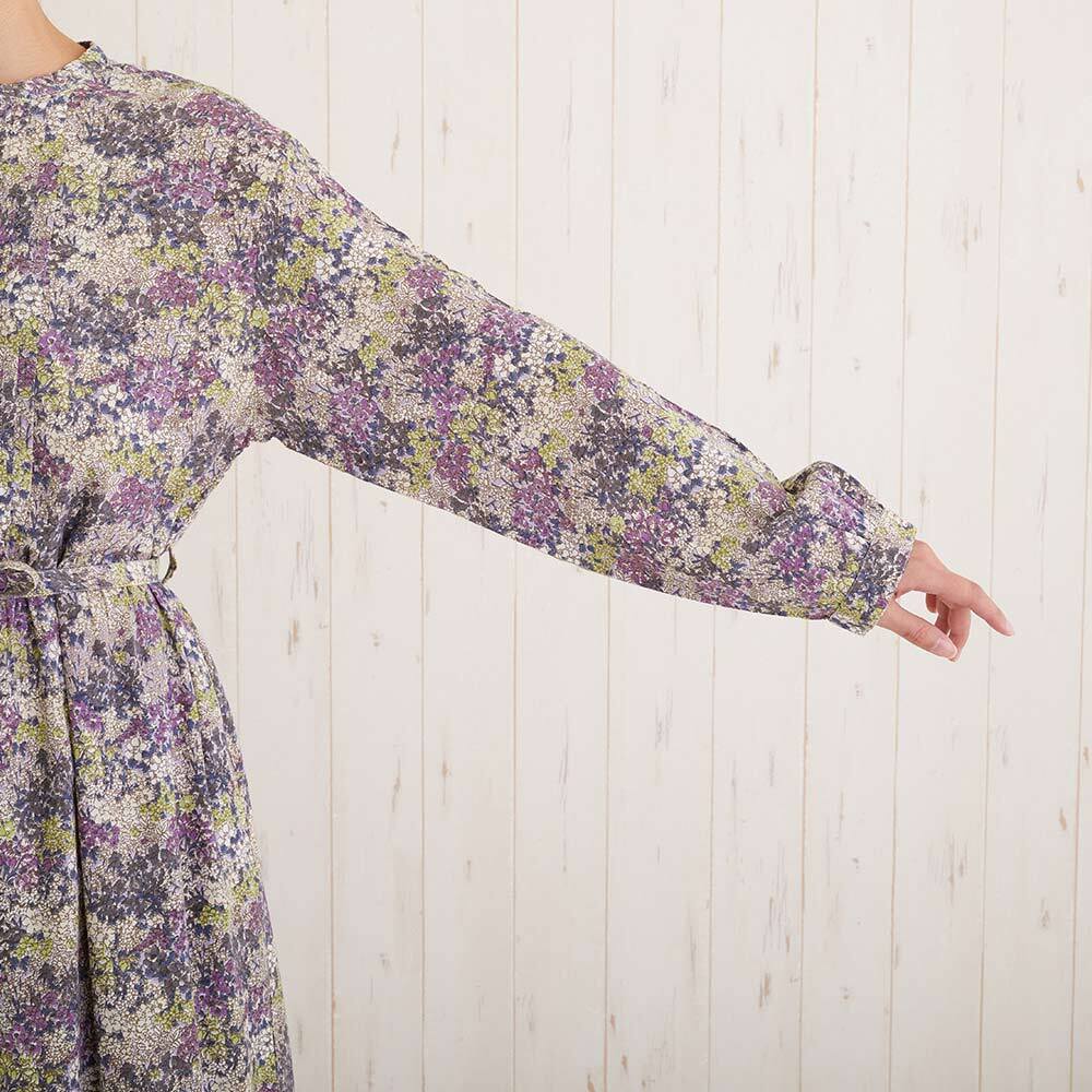 前ボタンをあけて羽織るスタイルも素敵ですがヴィンテージ感のある花柄なのでデニムジャケットやノーカラージャケットに合わせても上品に着られます。