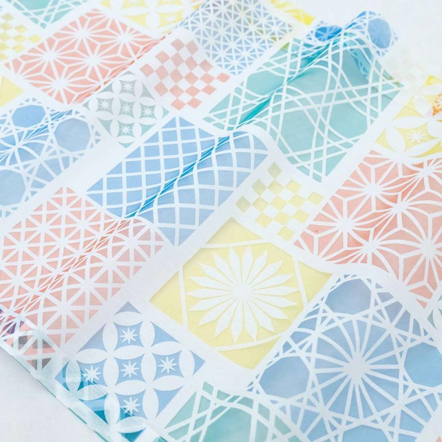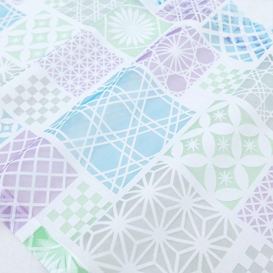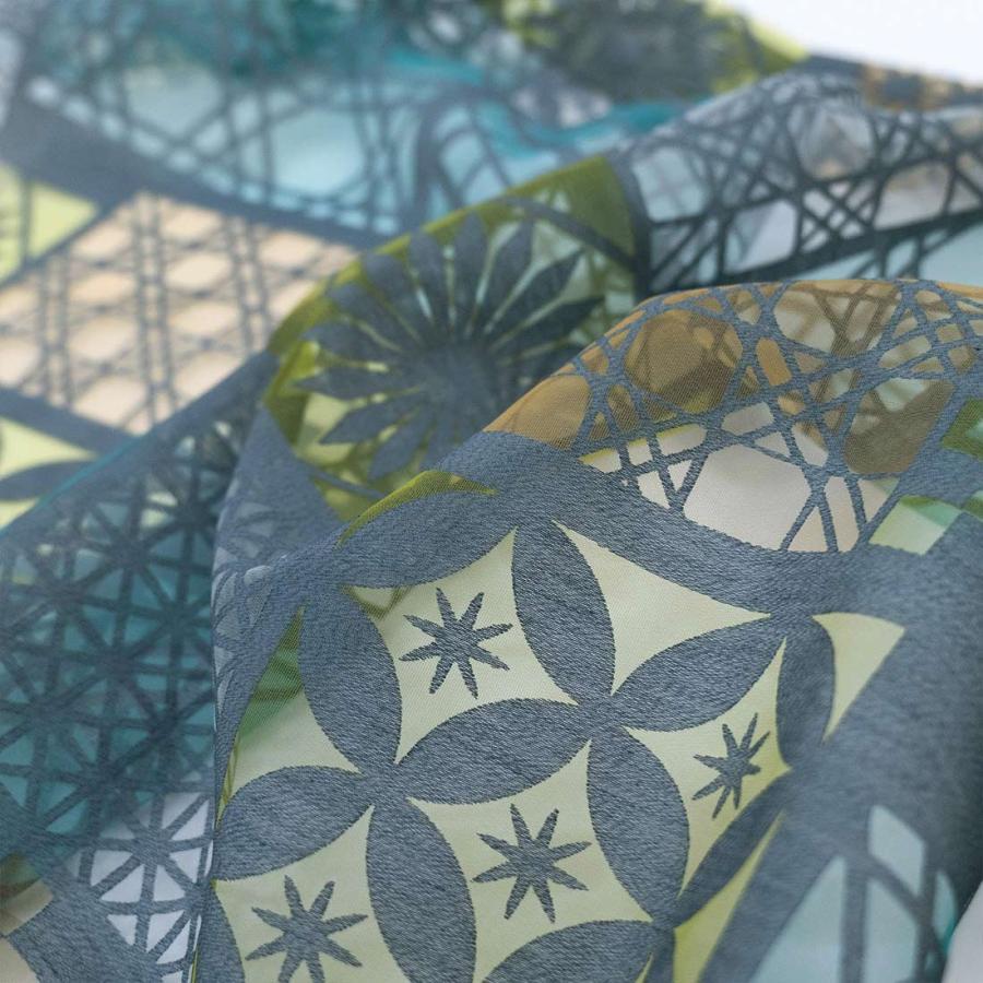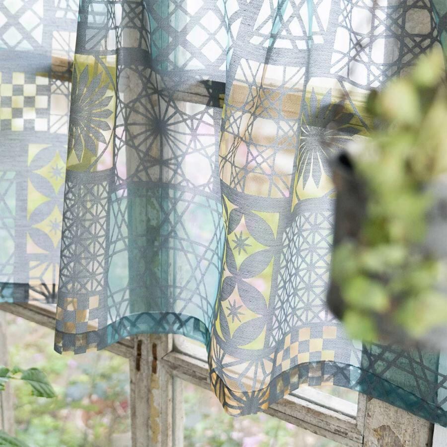 カフェカーテン 切子 透かし柄が美しいオパール生地 伝統的なガラス細工の切子をモチーフにした和風のデザインです。 オパール加工によりポリエステルの部分だけを残して透かし柄を描いているので、光に透けて映し出される影もとてもキレイです。