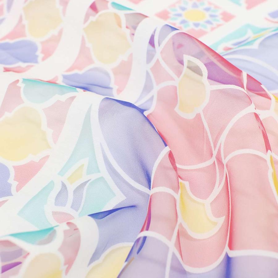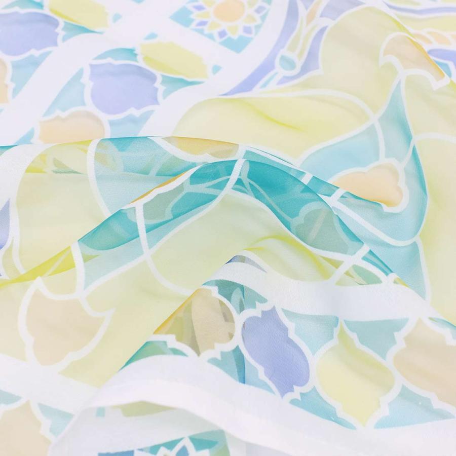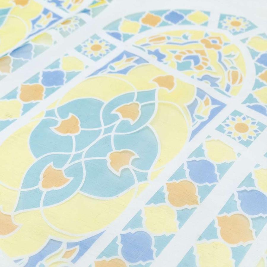 カフェカーテン ヴィトライ 透かし柄が美しいオパール生地 世界で最も美しいモスクといわれるトルコのブルーモスク。 そのブルーモスクのステンドグラスをモチーフにしたカフェカーテンです。 オパール加工によりポリエステルの部分だけを残して透かし柄を描いているので、光に透けて映し出される影もとてもキレイです。