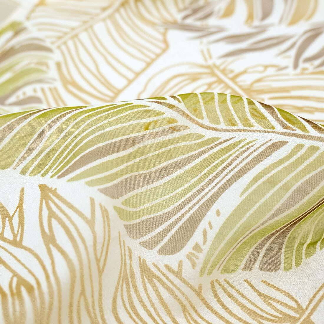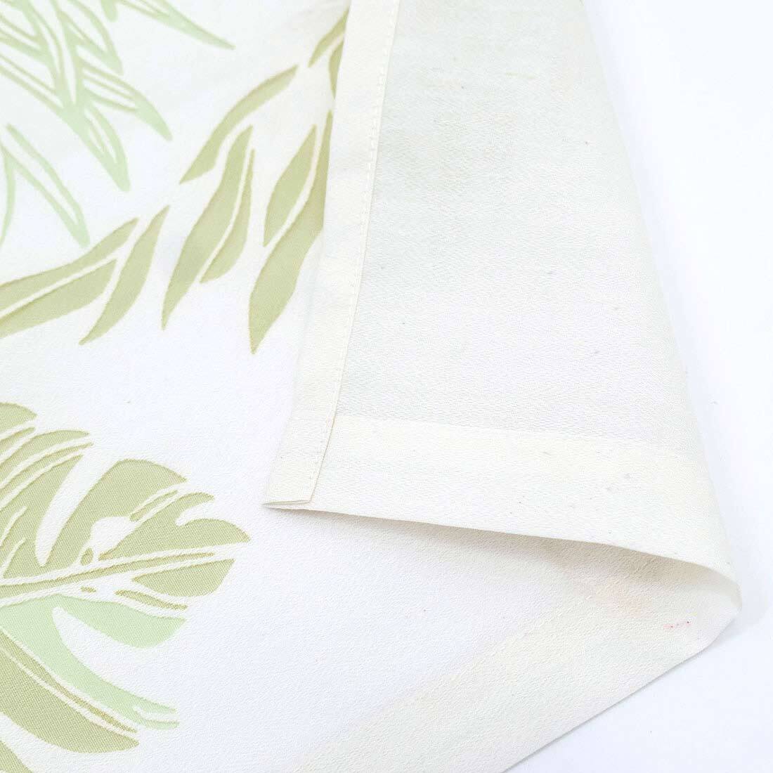 カフェカーテン パラダイスリーフ 大人っぽいリーフ柄がお部屋をおしゃれに 南国リーフが大人リゾートの雰囲気を演出してくれるカフェカーテンです。 風に揺れるたびに爽やかさがお部屋に広がります。 オパール加工によりポリエステル部分だけを残して透かし柄を描いているので、映し出される影も素敵です。 生産地 インド サイズ 約105×70cm 素材 綿65%、ポリエステル35%