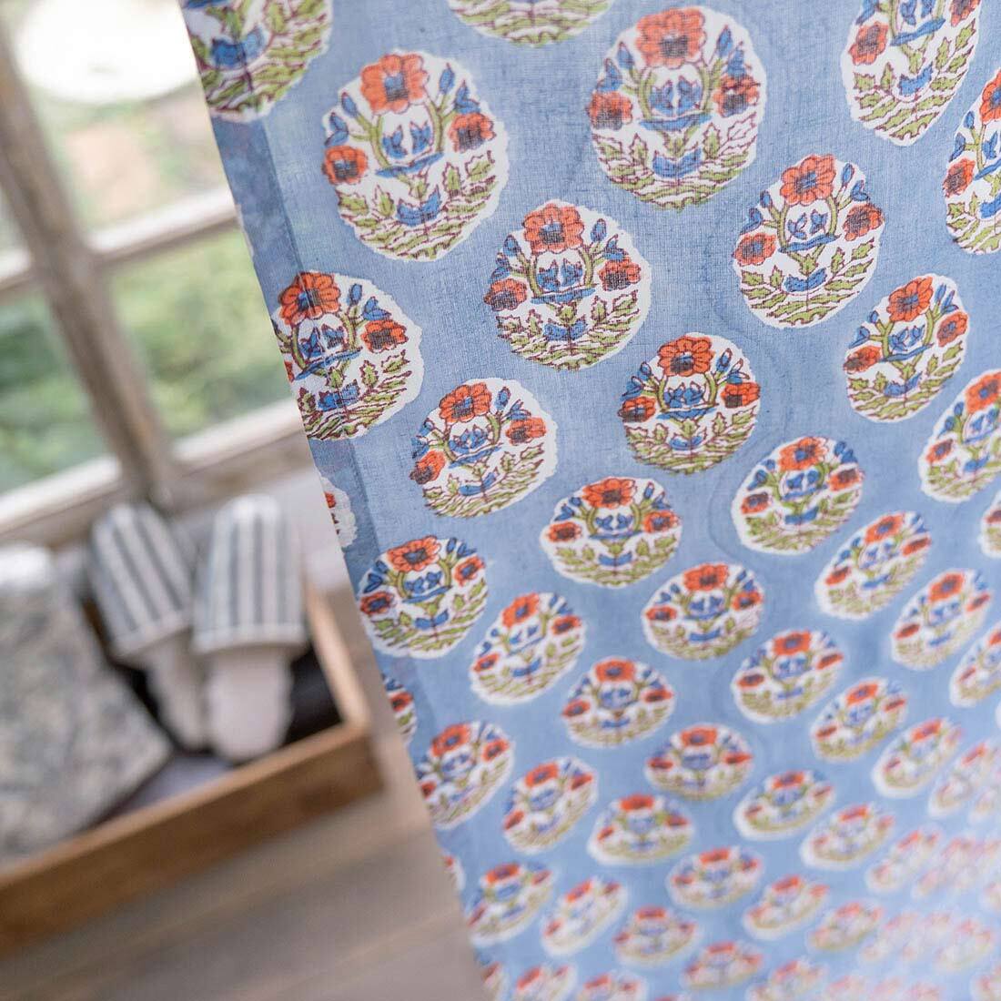 のれん アマービレブロックプリント 可憐なモチーフとかわいい配色が乙女心をくすぐります インドのブロックプリントでデザインされたボタニカル柄のれんです。「アマービレ」は「やさしく、愛らしく(演奏する)」という音楽用語。毎日に「愛らしさ」をプラスしてくれます。 フェミニンな柄が風に揺れ、心地よい雰囲気を演出してくれます。 「ブロックプリント」は木版を使って、職人がひと版ひと版、手でスタンプを押すように生地の上にプリントするインドの伝統的な技法です。 アマービレブロックプリント 生産地 インド サイズ 約80×150cm 素材 綿100%