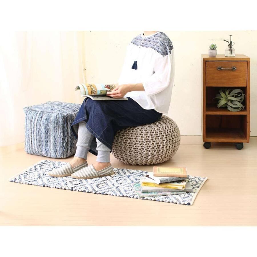 モロッコで昔からプフ(POUF)と呼ばれるソファクッション。ひもを結んだり、編み込むことで美しい模様を生み出すマクラメ編みで作りました。