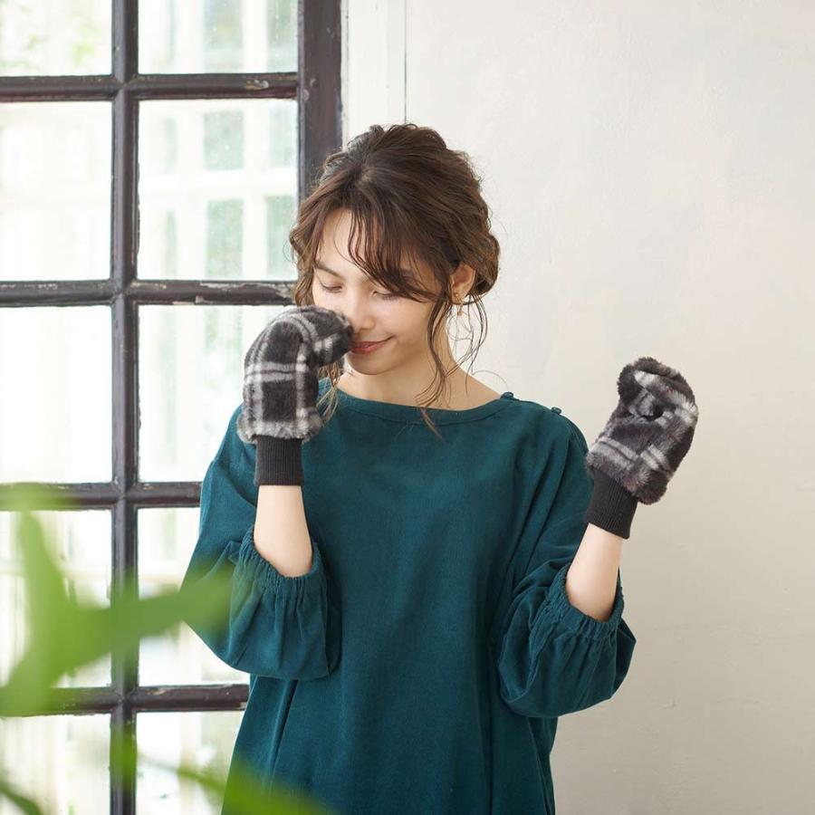 フェイクファーのふわふわ生地で、ミトンを作りました!