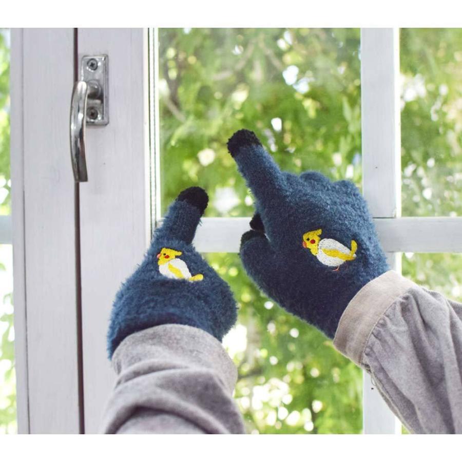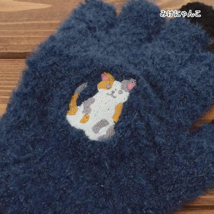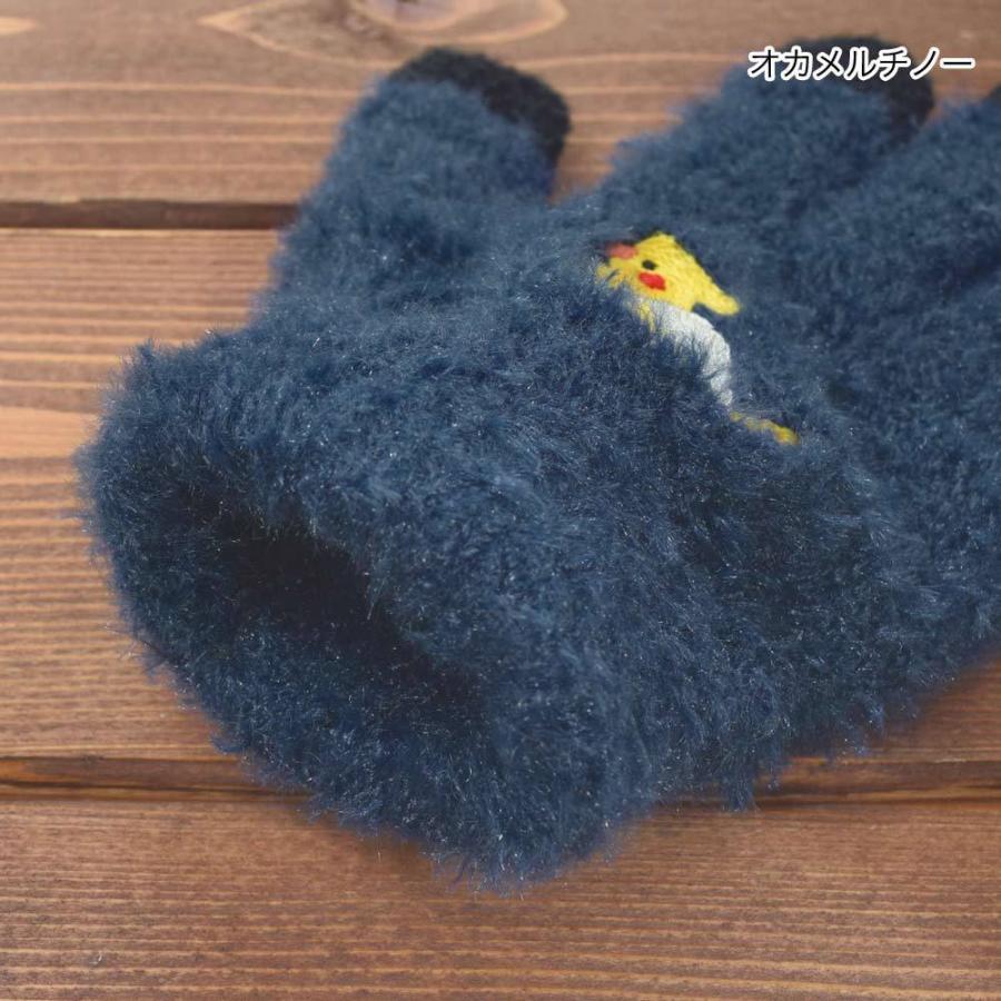 キュートな刺繍のもふもふスマホ手袋のキッズサイズ