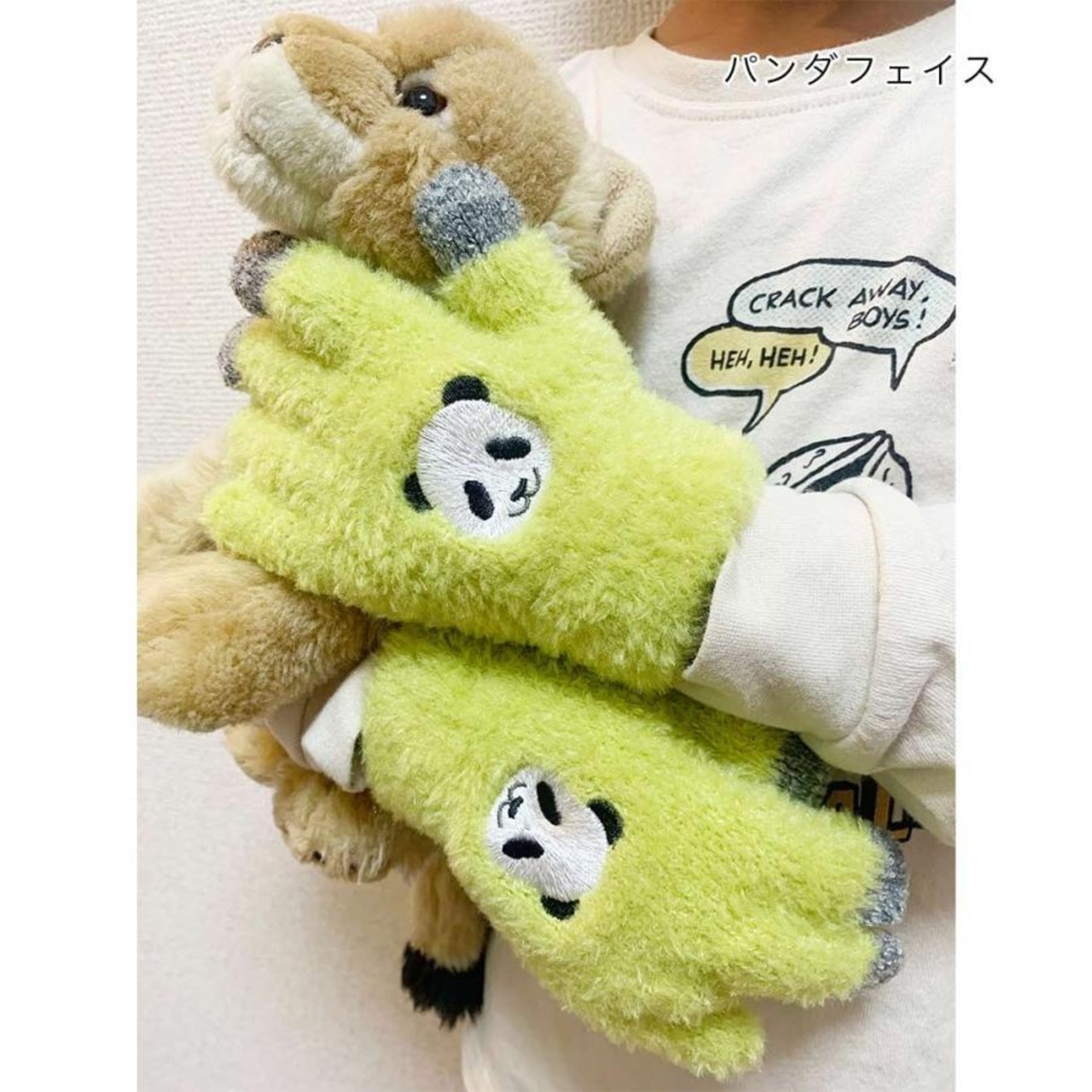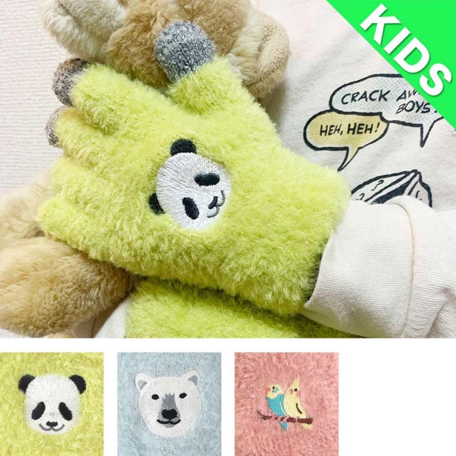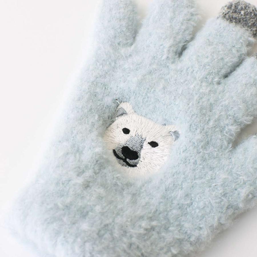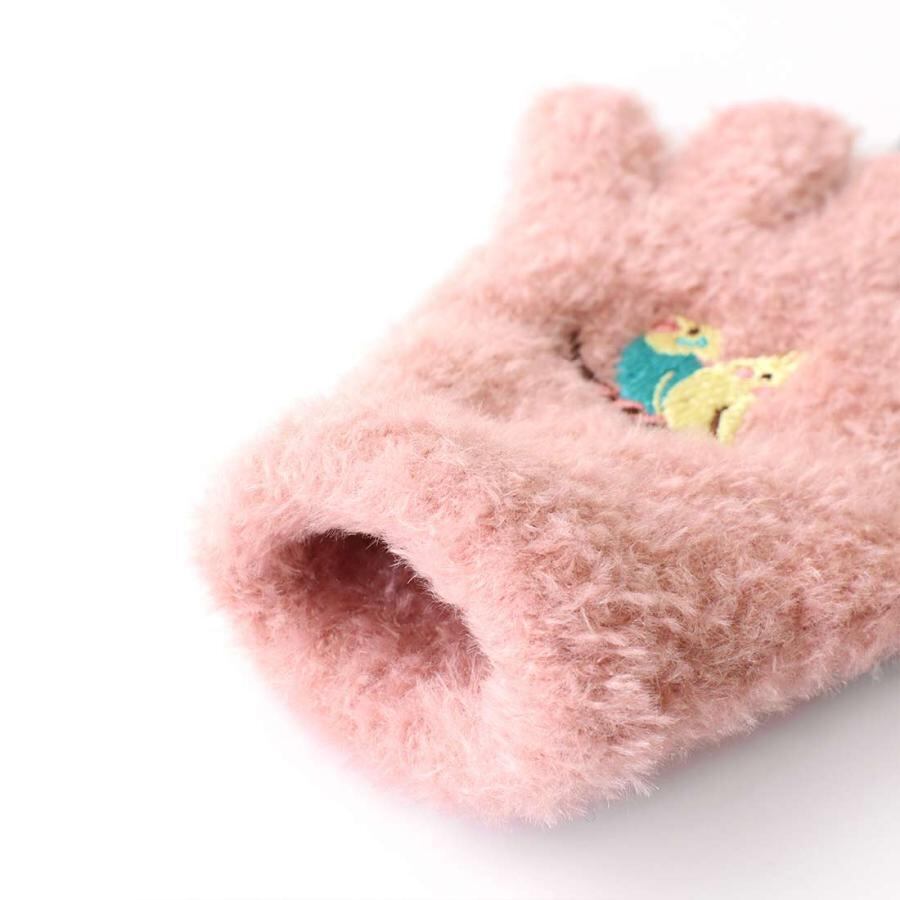 キュートな刺繍のもふもふスマホ手袋のキッズサイズ