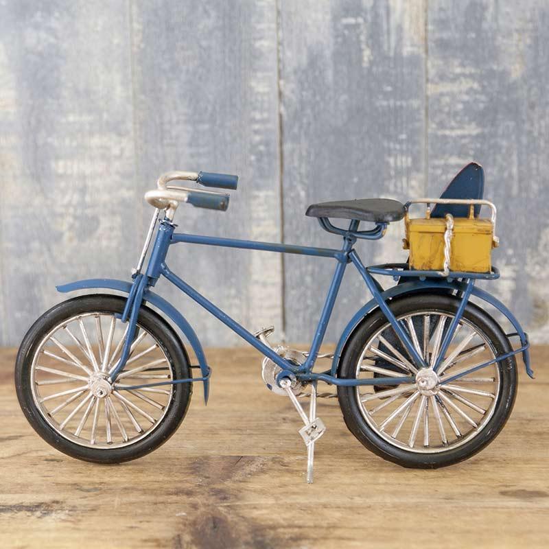 ミニサイズのボードを乗せた自転車でかわいい ブリキの素朴感が味のあるグッドオールドシリーズの置物です。