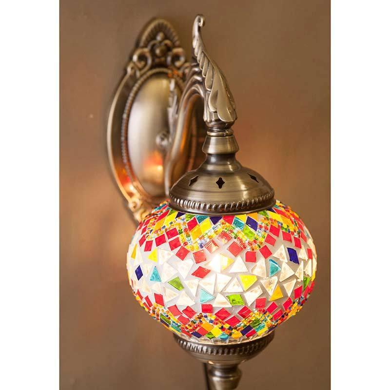 エキゾチックなガラスの輝きが美しいウォールランプです。 ムーディーな照明は寝室のサイドテーブルなどで活躍してくれます。 色ガラスから漏れる光が落ち着いたムードのあるお部屋に変えてくれます。 細かなガラスが散りばめられた美しい照明。 点灯しているときと消灯しているときの雰囲気が違うのも魅力的です。 こちらの商品にはLED電球が付属しております。 本 体]約 W15 x H23 x H39cm [コード長]約 140 cm(中間スイッチ付) 生産地:中国 [素 材]鉄、ガラス [付 属]E26、4W(LED電球1個付き) 最大ワット数40Wまで This production is proportionate to the standard of Japan. Pls be noted that the utilization overseas are not guaranteed. ■最後の画像の丸印部分のように壁面に取り付ける部分が歪んでいる箇所があります。 製造工程上このようなものが見受けられますが、すべて良品扱いとなります。 ■白熱球に変更する場合はE26直径60mm(40Wまで)の電球をご使用ください。