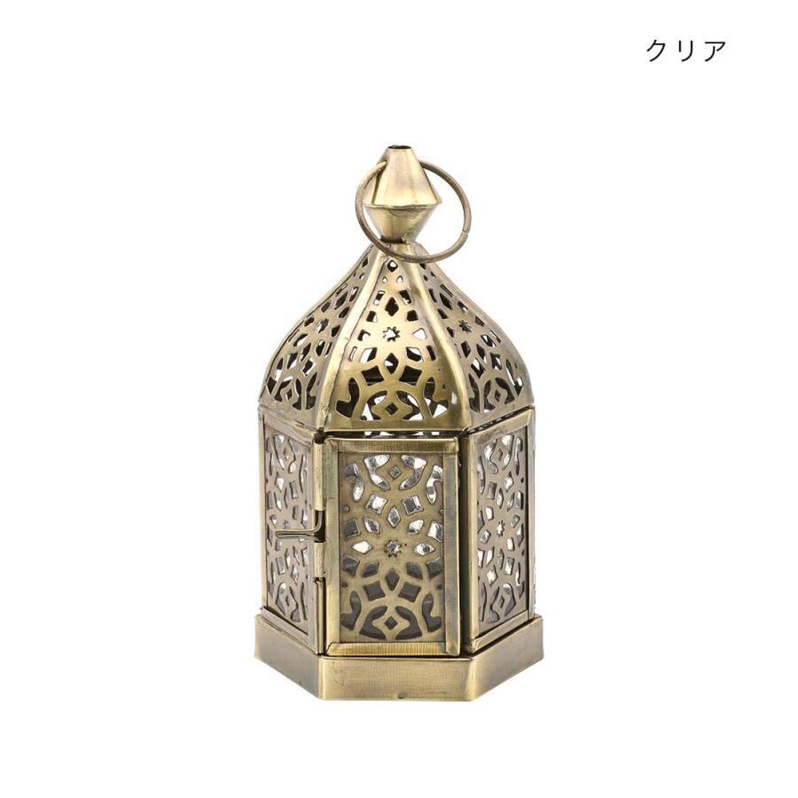 モロッカン キャンドルホルダー S 上品で神秘的なモロッカンシリーズが新登場! 繊細な透かし柄と色鮮やかなレリーフガラスが美しいモロッカンキャンドルホルダー。 イスラム教のモスクを連想させるようなデザインが、まるで異国に来たかのような雰囲気を演出してくれます。 キャンドルの灯りが透かし柄の模様を照らし、お部屋をオリエンタルな空間に。神秘的な光と繊細なデザインが、癒しのひとときを与えてくれます。 使用上の注意 ・火をつけると商品が非常に熱くなります。やけどや火災の恐れがありますので、取り扱いには十分注意してください。本商品はLEDライト推奨となります。 ・火をつける際は平らな場所に置いて使用してください。お客様の火元責任の下安全にご利用ください。破損や火災やけど事故等は製造元販売元は一切責任を負いません。 ・安全のためLEDライトのご使用を推奨いたします。 生産地 インド サイズ パープル:約12×7×6cm ターコイズ:約14×7×6cm イエロー:約13×5×5cm クリア:約15×7.5×7cm アンティーク仕様により素材:ガラス等 気泡や成型ムラなどあり ガタツキ等もすべてアンティーク仕様となります。アンティーク仕上げでアウトドアにもとってもおしゃれ