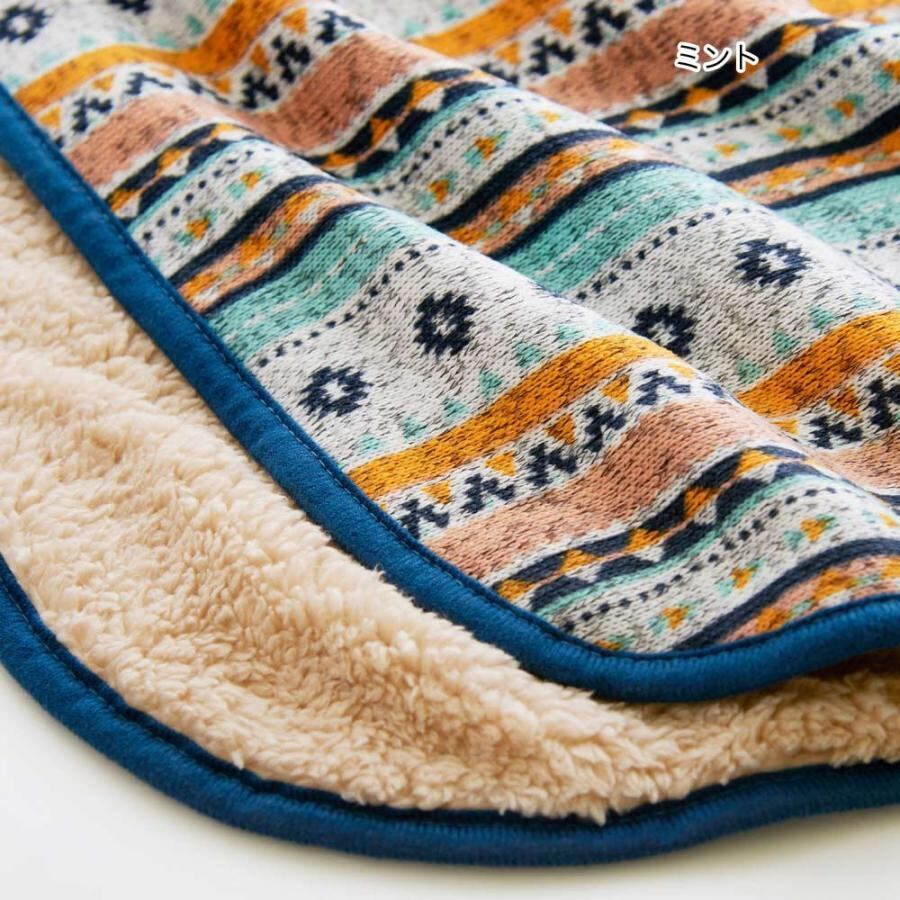 人気のチマヨ柄を上品に重ねた大人ネイティブなハイゲージニットブランケット。裏ボア素材で肌触り抜群!