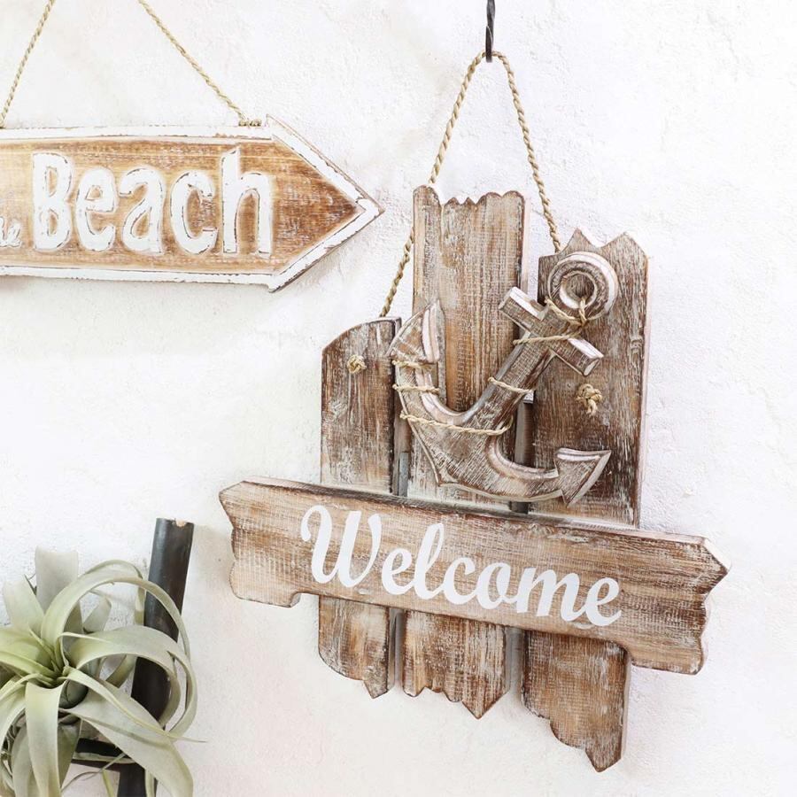 ウェルカムボード イカリ マリンテイストなウェルカムボード 玄関やお部屋の扉に飾ってマリンテイストを楽しめるウェルカムボード。 玄関外のデッキ部分に飾ったり、お店の入り口にもご利用いただけます。 海を感じられるオシャレなインテリアとしておススメです。 生産地 インドネシアBR>