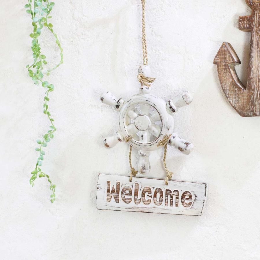 ウェルカムボード マリンテイストなウェルカムボード 玄関やお部屋の扉に飾ってマリンテイストを楽しめるウェルカムボード。 玄関外のデッキ部分に飾ったり、お店の入り口にもご利用いただけます。 海を感じられるオシャレなインテリアとしておススメです。 生産地 インドネシアBR>