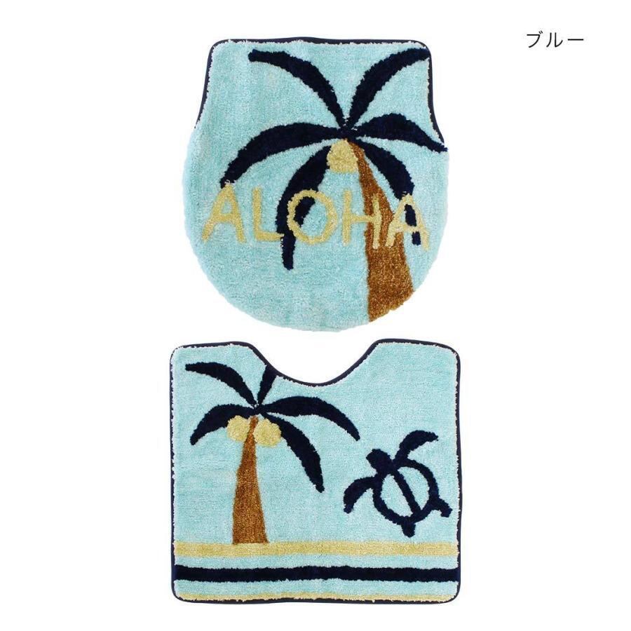ハワイアン トイレ 洋式 ふたカバー マット 2点セット インテリア マット トイレタリーセット アロハホヌ トイレを華やかにしてくれるふわふわトイレタリーセット! ヤシの木とホヌのハワイアンデザインが魅力的なトイレマット&フタカバーです。 ハワイアンな小物と合わせてトイレをハワイアンテイストな空間にするのも◎ 優しい肌触りが気持ち良く長い時間過ごしちゃいそう。