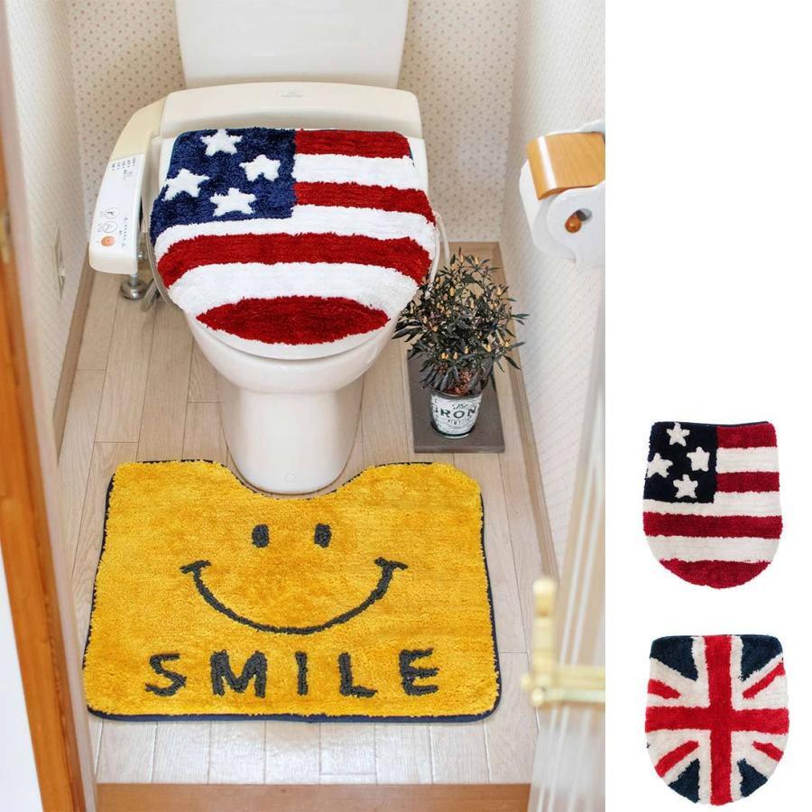 トイレマット セット 2点 カルフォルニアスタイル 西海岸 スマイル トイレ ふたカバー