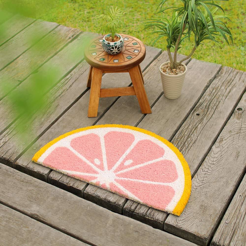 フルーツをカットしたとってもジューシーなデザインのコイヤーマットです。玄関でお客様を楽しくお迎えしてくれます。
