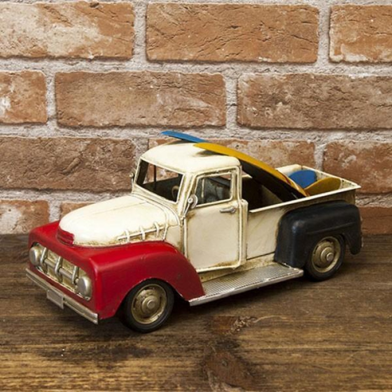 ブリキ ヴィンテージカー サーフトラック ホワイト レッド