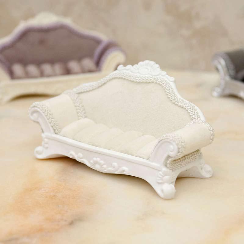 オシャレなリングホルダースタンド カラーはグレー、アイボリー、ライトパープルの3色展開です。 お店の展示品の様にお部屋でもお気に入りのアクセサリーを飾っても。 店舗装飾、展示会のディスプレーにも◎ リングをオシャレに可愛く飾れます サイズ:W15 x D6 x H7 cm 素材:ポリレジン、布(ベルベット) ご覧になるPCの環境によっては実物と色味が若干違ってみえる場合があります。