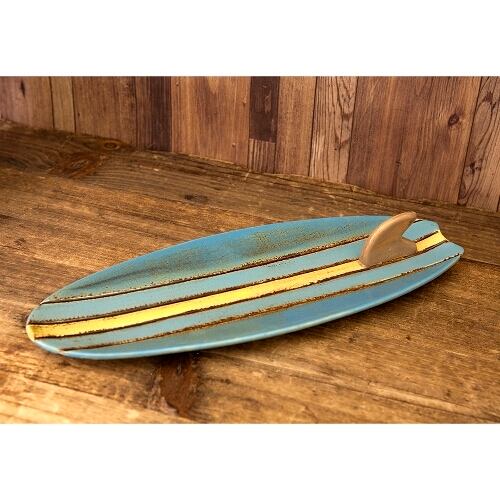 西海岸の海を感じさせる、ハワイアンスタイルのサーフボードトレイ。ブルーの美しいカラーが目を引き、お部屋のアクセントになります。サーフィンを愛する方や、ビーチライフスタイルが好きな方にぴったりのアイテムです。