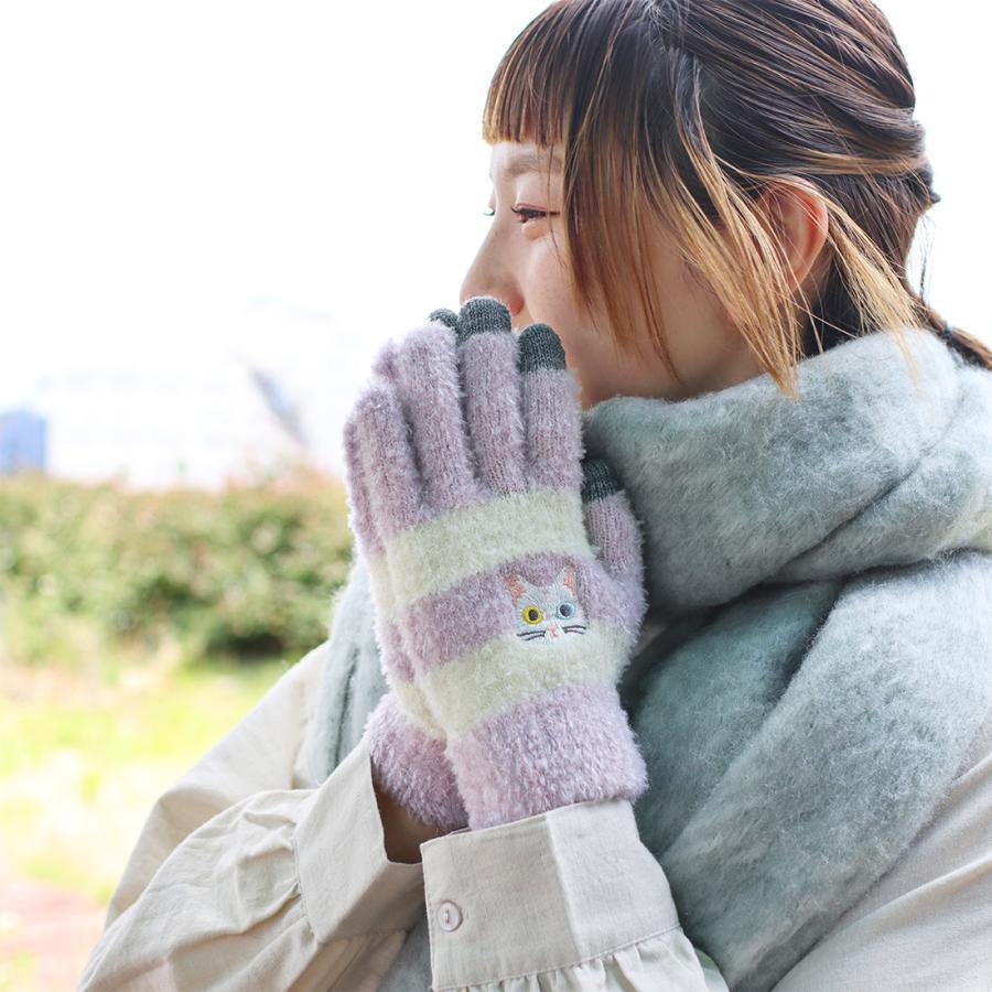 猫の手袋 グッズ オッドアイ みけねこ 手袋 もふもふ 癒し かわいい 秋冬
