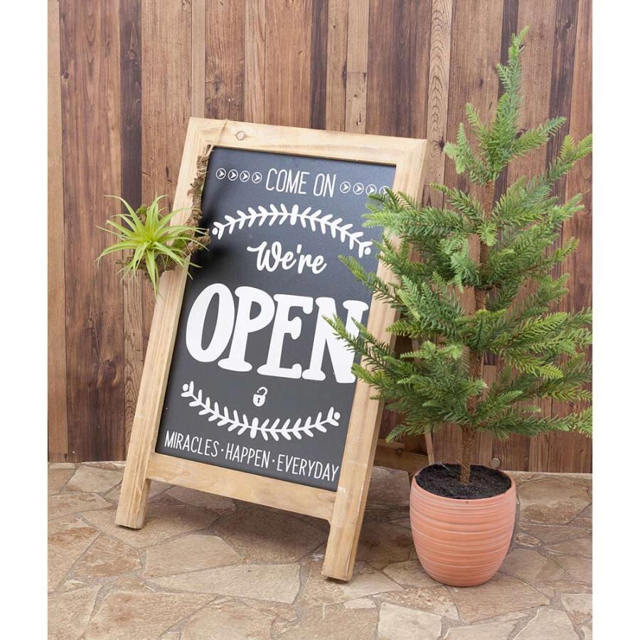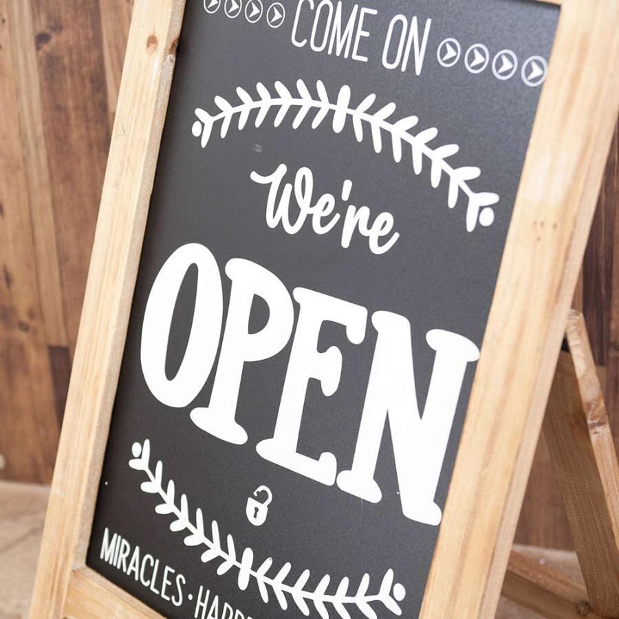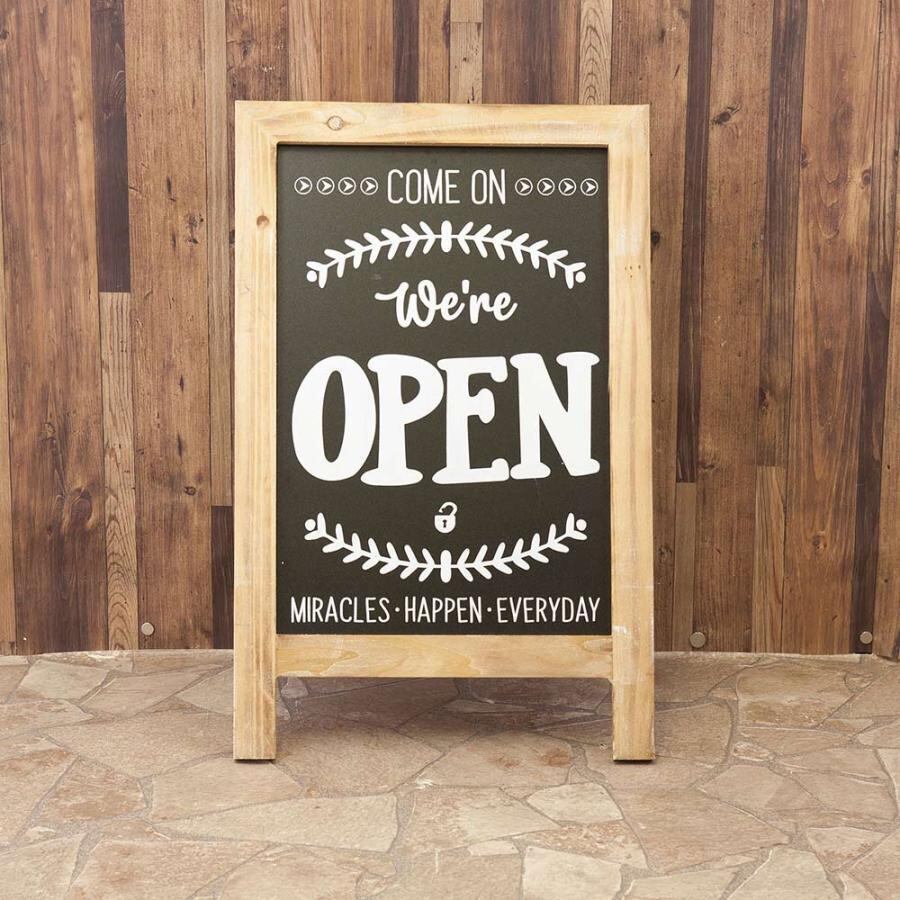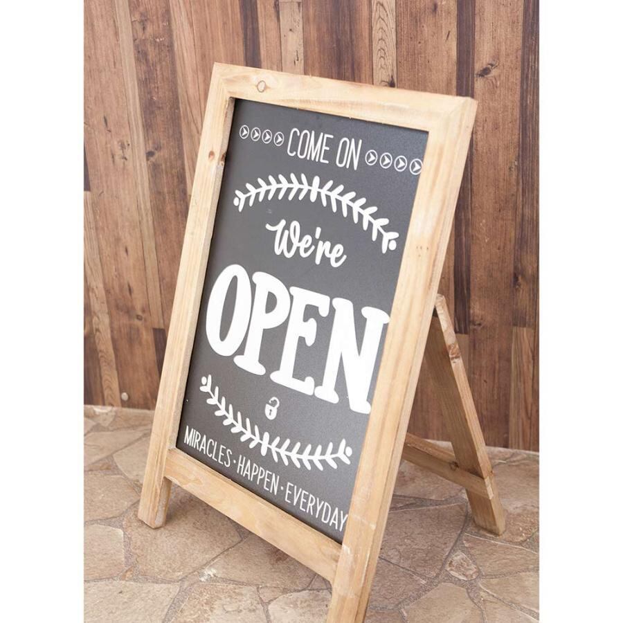 レトロでオシャレなフォルダブルスタンドOPEN表示の便利でおしゃれな看板です。 店舗などにOpenを飾ると印象もガラッと変わります。 約 W60 x D3.6 x H38 cm / 1.2kg 圧縮木材(フレーム)、鉄(金具)、紙(文字部分) 中国製 文字部分はプリントですので、雨ざらしになるような野外での使用には向きません。 インテリア用としてご利用ください 黒板機能はありません。 カフェやレストラン、装飾に♪