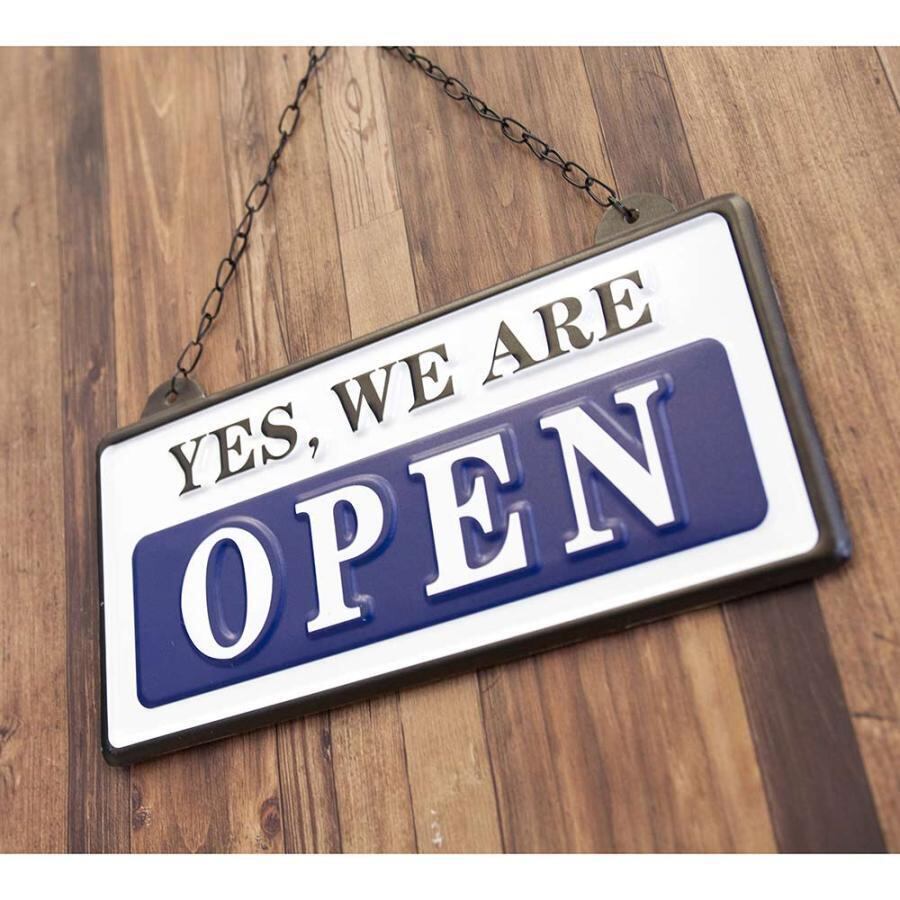 オープンとクローズドが両面仕様で、お好みやシチュエーションに合わせて使い分けられます。 どんなお店でも違和感なく馴染むクラシカルなデザイン W30 x D1 x H16.5 cm / 380g 生産地:中国 素材:アイアン等 白黒でシンプルなデザインです。USA ハワイアン コーヒー カフェに レストランに