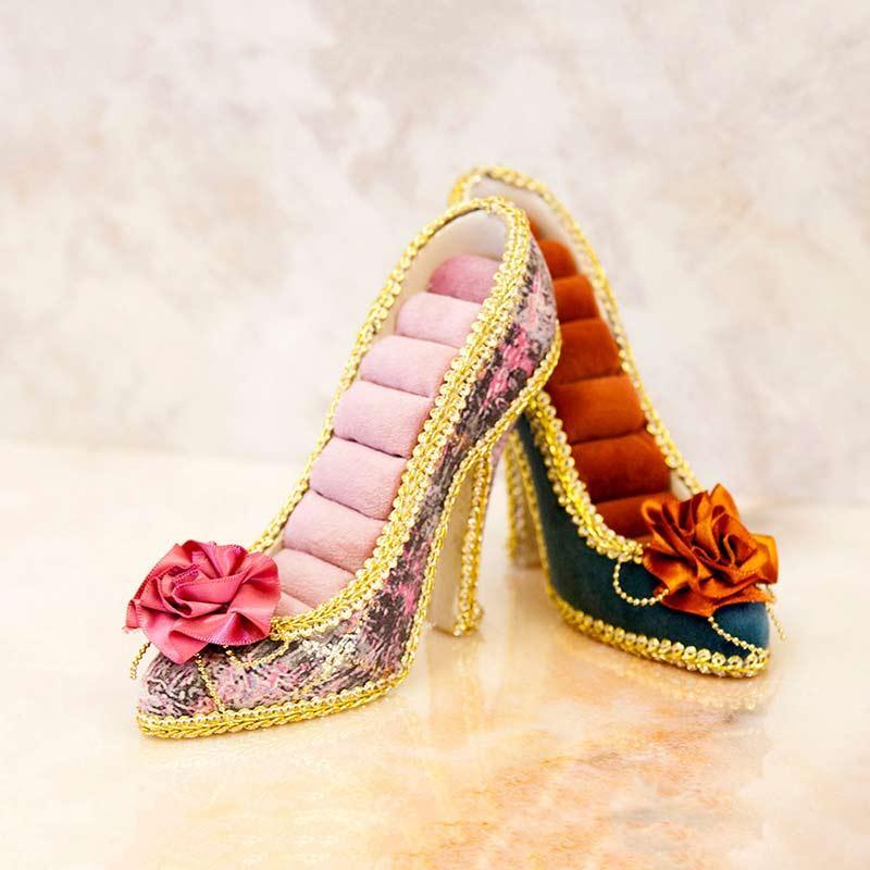 ハイヒール型のオシャレなリングホルダースタンド カラーはグレー、アイボリー、ライトパープルの3色展開です。 お店の展示品の様にお部屋でもお気に入りのアクセサリーを飾っても。 店舗装飾、展示会のディスプレーにも◎ リングをオシャレに可愛く飾れます サイズ:約W14 x D.5 x H12 cm 素材:ポリレジン、布(ベルベット) ご覧になるPCの環境によっては実物と色味が若干違ってみえる場合があります。