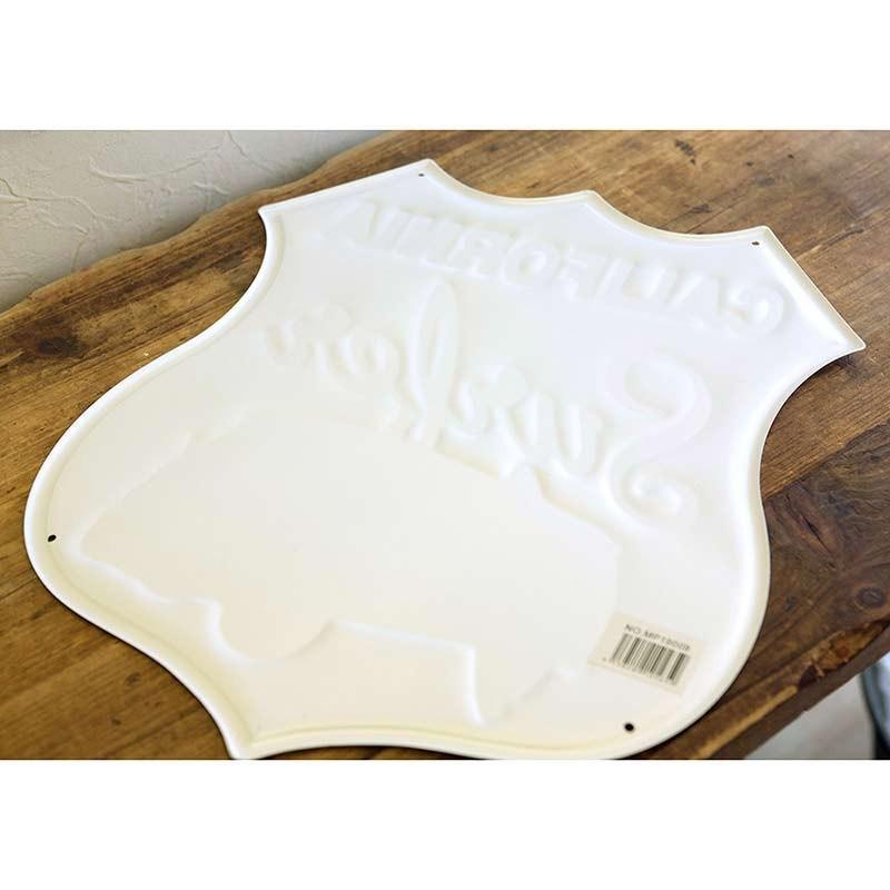 ROUTE66の形にカットされたオシャレなデザインのエンボスプレートです。