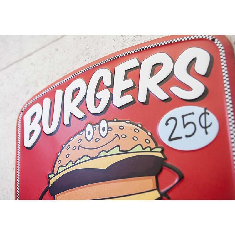 BIG BURGERS アイアンのポップなデザイン看板 キッチンカーや店舗装飾、春夏のインテリアにメタルテイストでおしゃれ サイズ約W.40 x D.1 x H.40 cm 生産地:中国 素材:鉄 お店の入口装飾、インテリア、お部屋にもサインにも