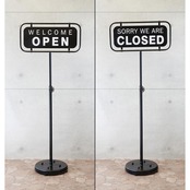 Ultimate decor OPEN & CLOSED 両面スタンドは、店舗でのディスプレイに最適 高さ調節可能なのでお好みに合わせて使いやすく調整することができます。 オープンとクローズドの両面を持つ便利なスタンドで、多彩な用途に活躍します。 スタイリッシュなデザインであらゆる店舗にマッチし、お客様の目を引きつけます W53 x D30 x H100 〜 166cm / 3.5kg/ 中国製 カフェやレストラン、装飾に♪