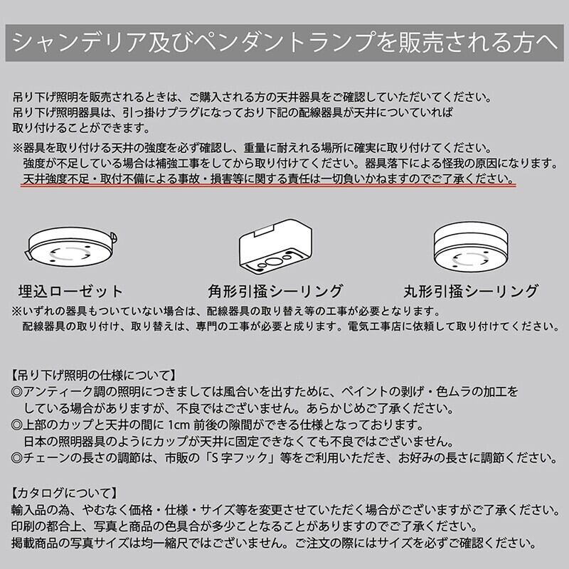 設置関連 シャンデリアお取り付けの際には、天井器具をご確認下さい。